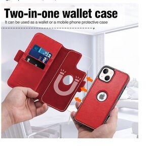 📱 WENSELLE Luxury Red Leather Wallet Phone Case with MagSafe & Card Slots