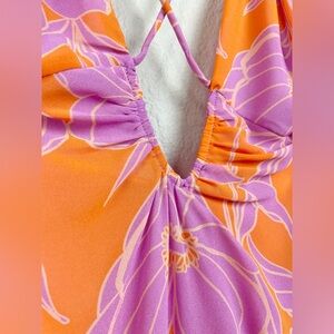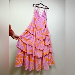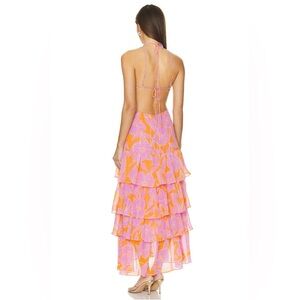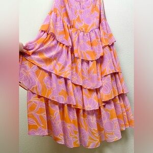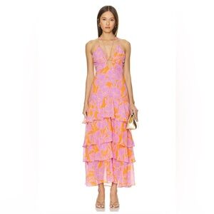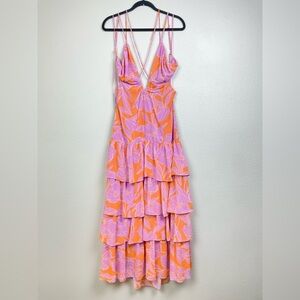 ASTR The Label Women's Large Aneira Dress Orange Purple Floral Maxi Ruffle Strappy