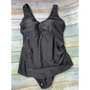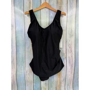 Swimsuits For All Black One Piece NEW Bathing Suit Sarong Front Size 14