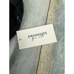 Get ready to turn heads with this stunning Swimsuits For All black one-piece bathing suit! This brand new swimsuit features a flattering sarong front design that will accentuate your curves in all the right places. The size 14 ensures a comfortable and secure fit, so you can focus on enjoying your time in the water.