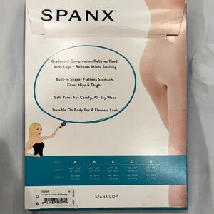 Spanx. New in box, never worn. May have been removed from packaging, but not worn. Graduated compression sheers. Size D. S3 color (nude). Smoke/pet free home.