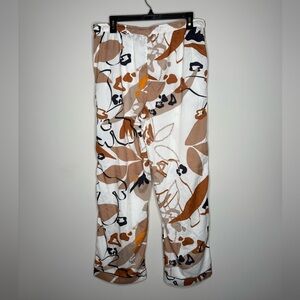 Chic wide leg pants with a bold white and brown design. Perfect for versatile styling.