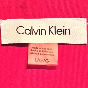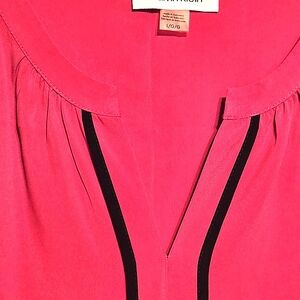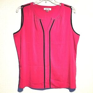 Calvin Klein Fuschia Sleeveless Splitneck Blouse Black Contrast Trim Sz Large