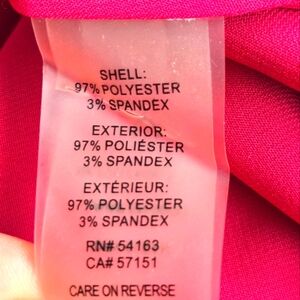 Calvin Klein hot pink/fuschia sleeveless blouse with pleated splitneck, and black contrast trim & shoulder detailing. Great pre-loved condition.
