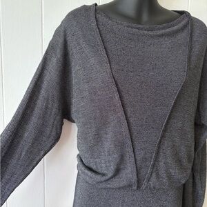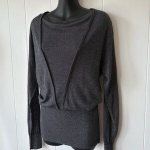 This sophisticated Escada top features a layered design with a gray long sleeve. The top showcases a stylish cowl neckline and a modern, clean silhouette. Has an inner lining