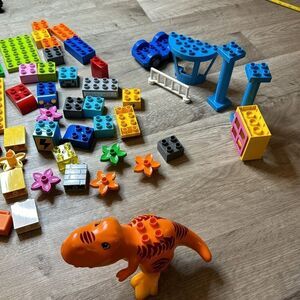 Legos. Duplo sets. The whole lot here. 90 Legos. Jurassic Park dinosaur