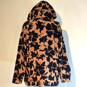 Stay stylish with this full zip hooded jacket. Featuring a chic camel/tan & black hibiscus floral camo design. The lightweight fleece is perfect for any occasion. Size Large, like new condition.