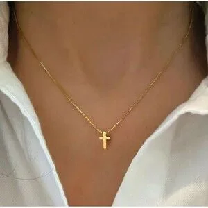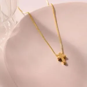 Elevate your style with this delicate 14k gold-plated cross necklace. Featuring a minimalist cross pendant on a fine chain, this dainty piece exudes understated elegance. Perfect for everyday wear or layering with other necklaces, it makes a thoughtful gift for any occasion.