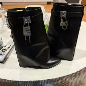Chic black ankle boots by Givenchy. Features sleek design with silver hardware. Perfect for stylish outings. Sole guard installed have a little discoloration in 1 boot see picture ask questions and request more pics if you need it.