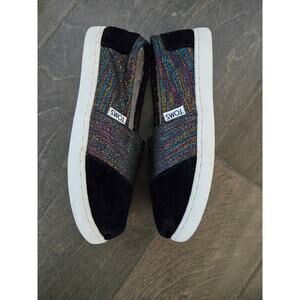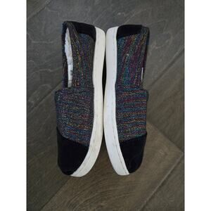 TOMS Classics Metallic Velvet Flats Girls Black Size 2