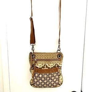 FOSSIL 🌞 Brown, Yellow & Beige Canvas Crossbody Bag