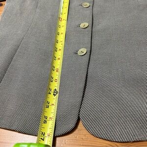 Garfield & Marks Vintage Linen Blend Knit Taupe Gray Blazer Button Detail Sz 10. Contrasting button front enclosure plus decorative buttons at cuff. Waist pockets. Slightly padded shoulders, fully lined. Ideal for both work and casual wear. In good pre-owned condition. Please see approximate flat lay measurements shown on photos.