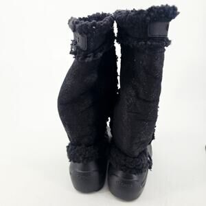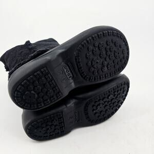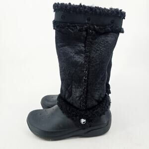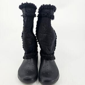 Crocs Nadia Pull On Winter Boot Black Rubber Faux Fur Fleece Comfy Cozy Womens 8