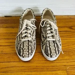 Stylish snake print design. Lace-up closure. Comfortable fit.