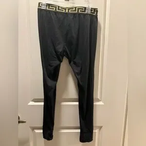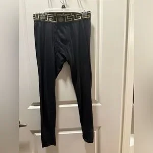 Elegant black long underwear with gold waistband. Versace logo detail. Ideal for comfort and style.