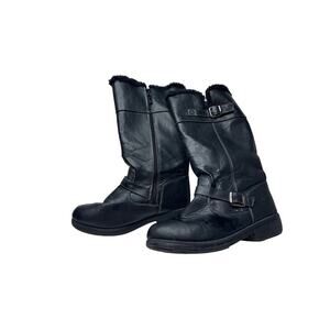 totes 9 M Black Ashton Faux Fur Pull on Buckled Knee High Boots Outdoor Winter