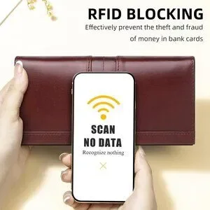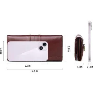 Modern Classical Coffee Leather RFID Bifold Wallet for Women