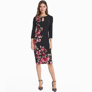 White House Black Market Floral Print Bodycon Dress Black Grenadine Small #A1408