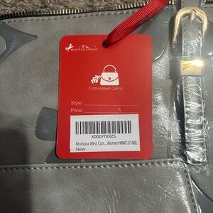 Elegant gray tote with floral pattern. Features dual zippers and gold accents. Ideal for daily use. Brand new never used. Includes dust bag.