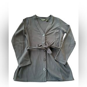 Eddie Bauer Women’s Black Buttoned V Neck Tie Waist Cardigan Size Medium