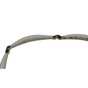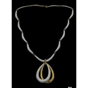 Vintage Crown Trifari White Enamel Bar Link Necklace with Tear Drop Pendant