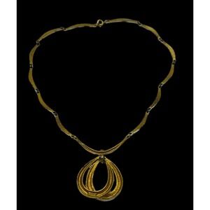Vintage crown Trifari bar link necklace with a tear drop pendant