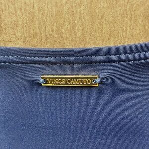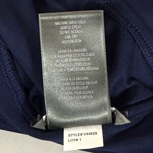 Vince Camuto 1PC halter tie navy blue swimsuit. Plunge neck line with decorative embellishment.