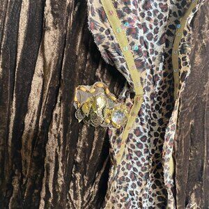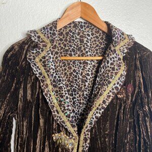 Great Pre-owned Condition Hugging Kisses Women's Jacket Brown Sz L Crushed Velvet Animal Print Embellished