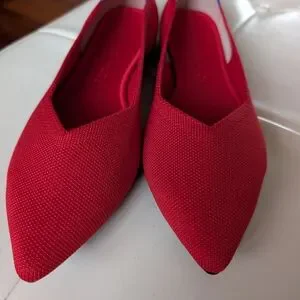 Step out in style with Rothy's vibrant red flats. Perfect for any occasion, these shoes offer both comfort and elegance.