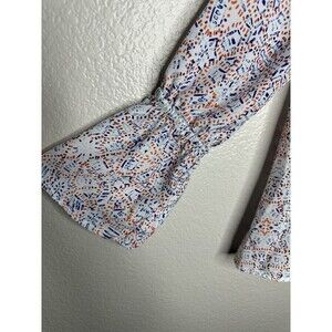 Cupcakes and Cashmere Blouse Womens Small White Orange Blue Boho Peasant Top Print
