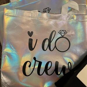 Includes bride canvas bag, white heart sunglasses, I do slippers, a candle, 3 “I do crew” silver totes, 1 gold bride tote, assortment of thank you cards, white floral robe. All like new. One of the i do crew bags was used 1x