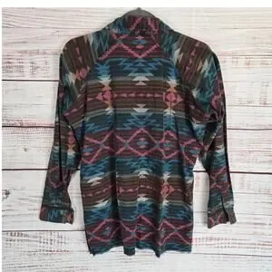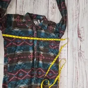 BKE Womens Buckle Plaid Boyfriend Shirt S Multi Aztec Print Button Granola Girl