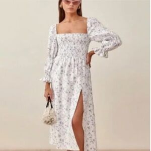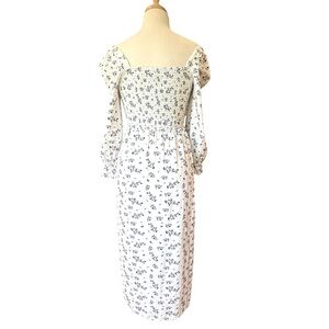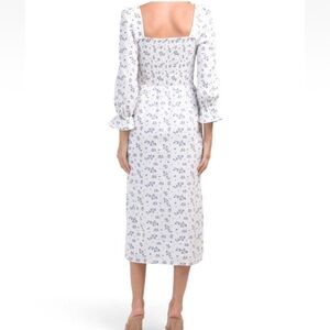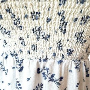 House of Harlow Linen Smocked Bodice Square Neck Floral Soft Cottagecore Size XS
