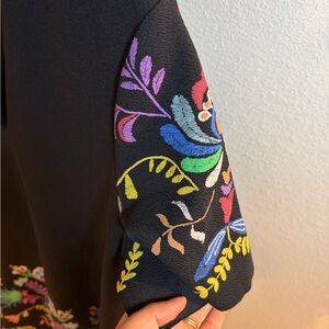 Black midi dress from Zara. V neck and short sleeves with colorful flower details on sleeves and bottom on size XL.