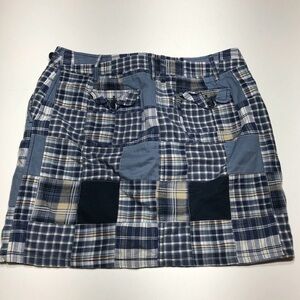 LOFT Patchwork Skirt Women Sz 12 Blue Madras Lined Zipper Button Pockets Preppy