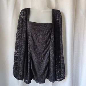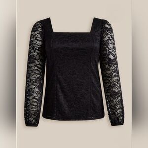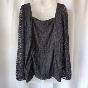 Torrid Black Lace Square Neck Long Sleeve Elegant Top Size 2X