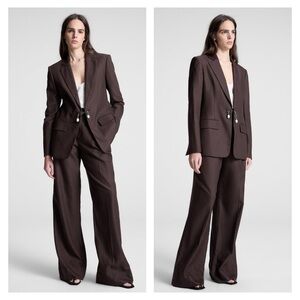 Refined and versatile, the A.L.C. “Tommy II” Soft Suiting Pants are a modern wardrobe essential. Cut in a rich brown suiting fabric, these trousers feature a high waist and wide leg silhouette that elongates the figure and creates an effortless drape. Designed with comfort and polish in mind, they transition seamlessly from office meetings to evenings out.