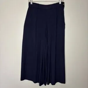 Alfred Sung Sport Wool Wide Leg Crop Trouser Pants Women Small Navy Chic Career