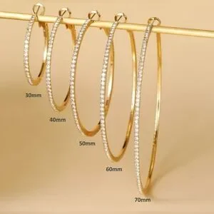 925 Sterling Silver Earrings Large Rhinestone Hoop Earrings Cubic Zirconia Gold