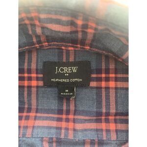 This J.CREW button-down shirt is a classic wardrobe essential for any man. The shirt features a blue plaid pattern, long sleeves, and a collared neckline with a button-down closure. It is made of 100% cotton, making it comfortable and machine washable for easy care. The shirt is perfect for both casual and workwear occasions and has a regular fit. It is available in size M and is suitable for all seasons. The shirt is not handmade and was manufactured in Mauritius. It has button accents and a button-down collar style. The shirt is not vintage and is perfect for any man who wants a classic wardrobe essential.