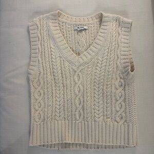 Chic V-neck sweater vest by Re/Done. Features a classic cable knit pattern. Ideal for stylish layering.