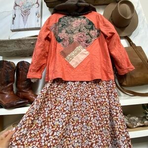 ✨ RARE granny patch work floral UPCYCLED boho jacket southwestern cabin vibe