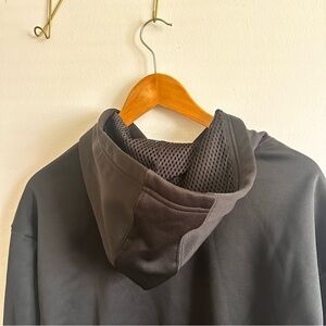 This Adidas hoodie showcases a classic black design accented by the signature white stripes on the sleeves, embodying a timeless sporty aesthetic. The pullover style with an attached hood offers a comfortable fit, making it perfect for casual streetwear. Made from soft fleece material, it's ideal for everyday wear.