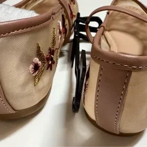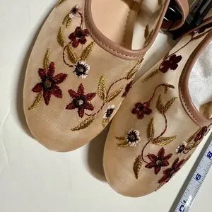 Chic flats with floral embroidery. Beige base with burgundy accents. Perfect for casual wear.