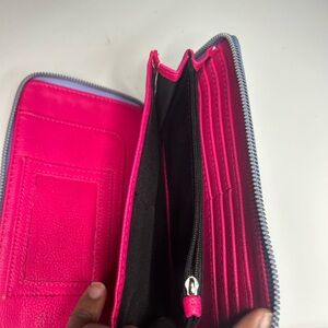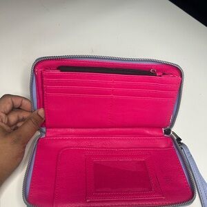 Elegant lavender wristlet with a stylish bow. Features a sleek design and wrist strap.