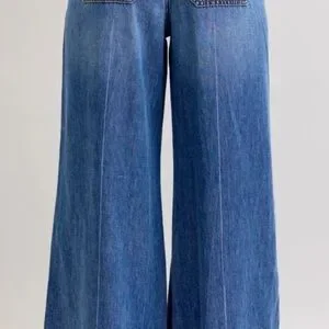 Stylish and comfortable, these blue wide-leg jeans are perfect for any casual outing. Featuring a relaxed fit and a drawstring waist, they offer both style and comfort.