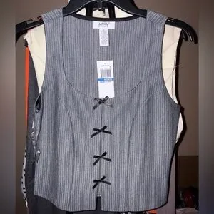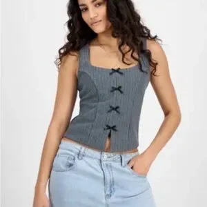 Gray PIN STRIPE BOW-TRIM VEST TOP JUNIORS NWT