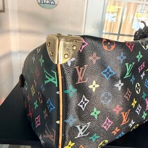 Chic LV satchel with vibrant multicolor monogram. Ideal for a bold fashion statement.