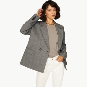 Anine Bing Becky Herringbone Cotton Oversized Blazer | Sz Medium | Grey & Black