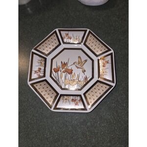 PAPITTON VERITABLE PORCELAINE OCTAGONAL FLORAL HUMMINGBIRD PLATE 6.25"